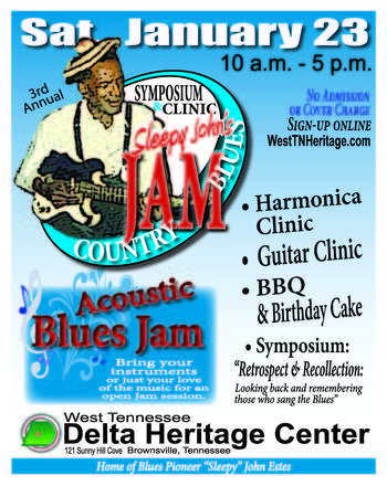 The third annual Sleepy John’s Country Blues Jam will be held Saturday, January 23, from 10 AM – 5 PM, at the Delta Heritage Center…