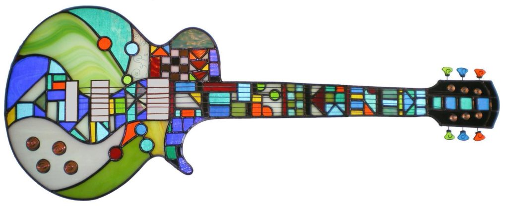 Stained glass guitar by artisan Debby Delashmet, member of Craftsmen’s Guild of Mississippi.