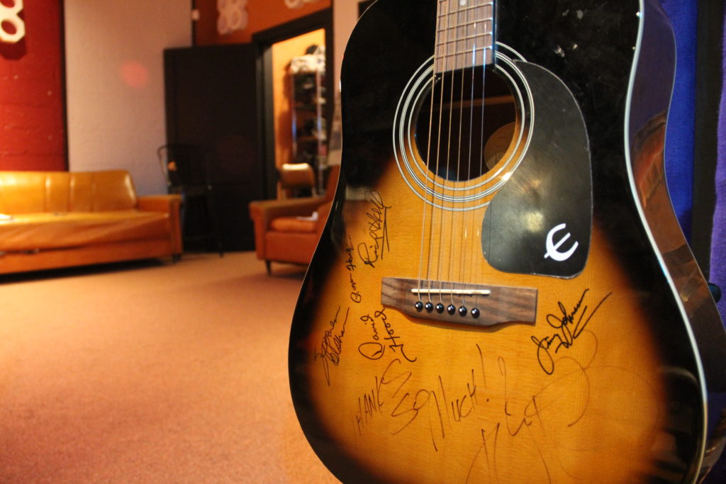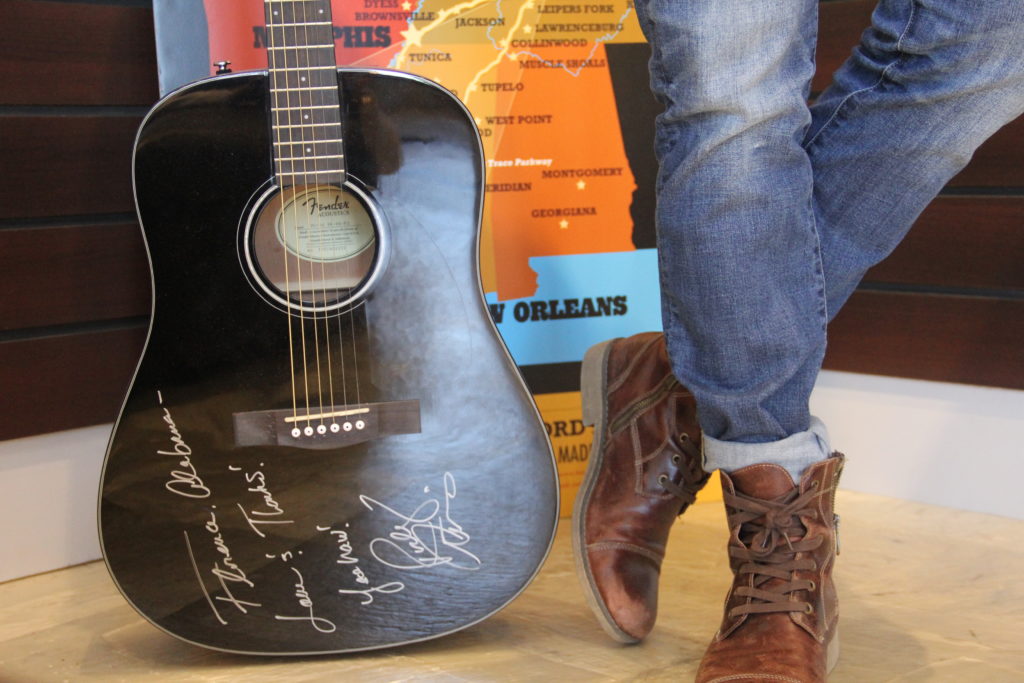 This guitar was signed by country singer Rodney Atkins when he was in Florence shooting a video.