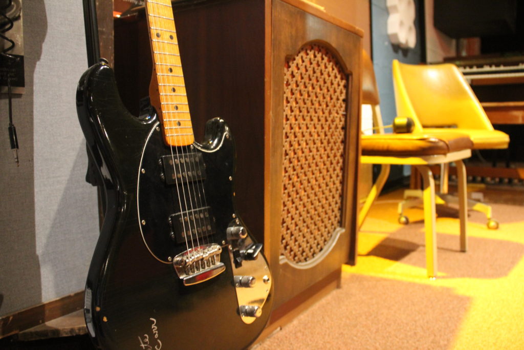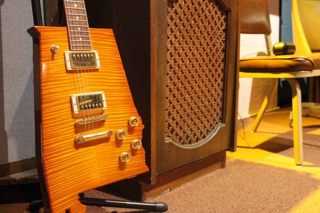 Called the Alabama Jammer, this was the only Alabama shaped guitar that Gibson ever made. It belongs to the state tourism office but is on loan to the studio.