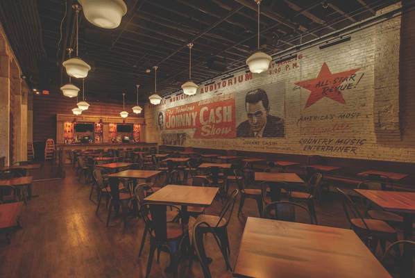 Patrons of Johnny Cash’s Kitchen & Saloon enter the first floor of the meat and three restaurant and are immediately greeted by the sounds of classic Cash performed live on the stage daily. Traversing backstage, they enter a cafeteria style dining establishment that features the curated menu of Swett’s, a Music City signature that has been welcoming customers through its doors at their original location since 1954. Seated beneath a hand painted mural immortalizing the Cash and Carter family legacies, guests will enjoy comfort food classics like delicious fried chicken, meat loaf, pork chops, catfish, roast beef and much more served with dozens of side dishes and homemade desserts.