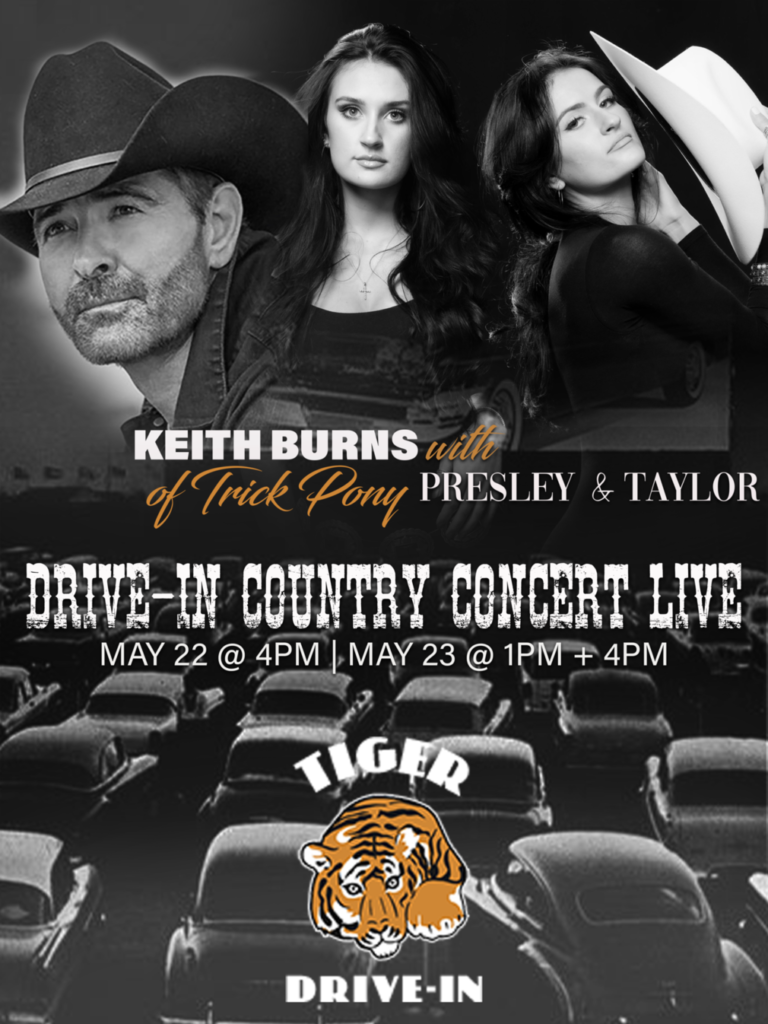 Presley & Taylor are joining the legendary Keith Burns of Trick Pony for a series of concerts at the Tiger Drive-In on May 22 at 4 PM and May 23 at 1 PM and 4 PM. As communities begin to introduce adjusted events, these artists are eager to bring the joy of music to Tiger, Georgia.
