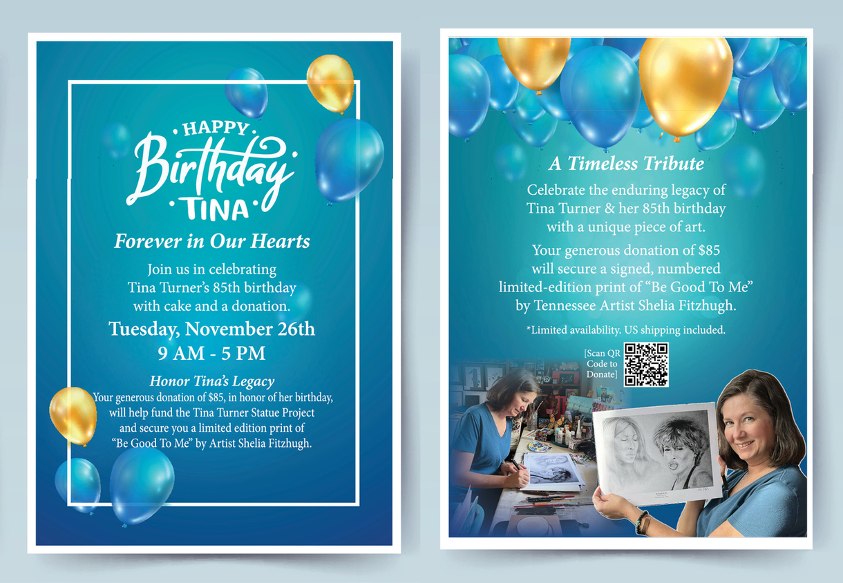 Fans are invited to celebrate “The Queen of Rock and Roll” by dropping by the facility for a piece of birthday cake and have the opportunity to take home a unique piece of memorabilia. Fans who make an $85 donation in person or online to the WTDHC Friends of Delta Heritage Museum will receive a limited edition, signed and numbered print of “Be Good to Me,” a portrait of Tina that reflects both her early and later career drawn by Tennessee Artist Shelia Fitzhugh.